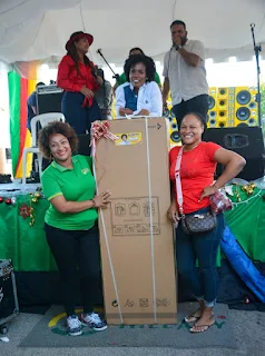 Desde la mañana hasta bien entrada la tarde, Hillary de la mano de sus empresas, muchas de ellas ubicadas en ese sector, rifó entre sus vecinos, neveras, estufas, lavadoras, Smart TV, abanicos, bocinas Bluetooth, juegos de cocina, colchas, piernas de cerdo, canastas navideñas y dinero en efectivo, en actividad que se hizo cerrando la calle Pedro Mestre.